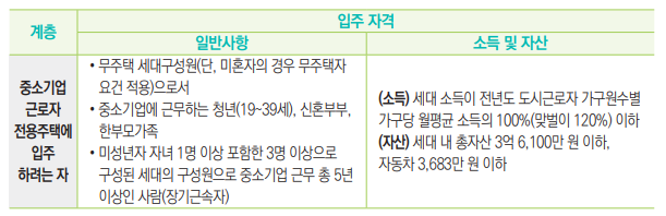 - 입주자 모집공고일 현재 무주택 가구 구성원으로서 소득 및 자산 보유기준을 충족하는 사람