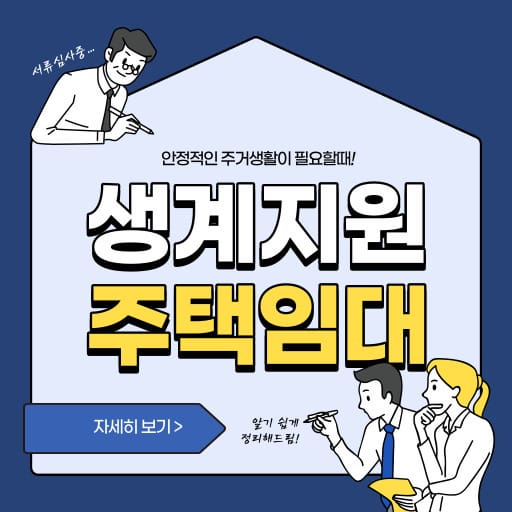 영구 임대주택 공급은 안정적 주거생활이 필요한 분들이 보다 저렴하게 주택을 공급받을 수 있도록 지원하며, 신청 대상은 생계급여·의료급여 수급자, 일본군위안부 피해자, 한부모가족, 도시근로자 월 평균소득 70% 이하의 국가유공자, 북한이탈주민 및 장애인 등 무주택 가구 구성원 입니다. 그럼 이외에도 많은 소식이 있으니 함께 알아봅시다.