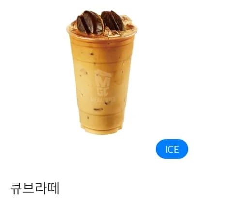 큐브라떼는 생각보다 엄청 달지도 않고 열량도 생각보다 높지 않아 좋은 메뉴입니다. 연유를 섞은 라떼에 에스프레소를 얼린 커피큐브를 올려, 녹을수록 더 진하고 깊은 커피맛이 느껴지는것이 특징입니다.