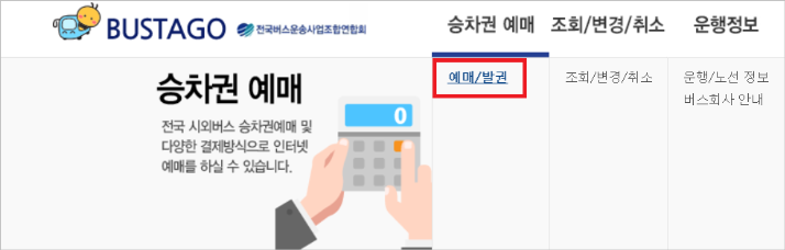 버스타고는 전국버스운송사업조합연합회에서 공식적으로 운영중인 시외버스 예매 서비스 시스템입니다. 버스타고 서비스를 이용하면, 버스터미널에 직접 방문하지 않더라도 PC와 스마트폰을 통해 탑승자가 원하는 일정에 편리하게 미리 예약을 할 수 있습니다. 도한, 승차권 예매 뿐 아니라 승차권 조회, 취소, 변경, 주 이용 터미널 설정, 터미널 위치 정보, 무인 발권기 안내 등 다양한 안내 서비스를 이용할 수 있습니다. 오늘은 버스타고 PC, 휴대폰 예매 방법에 대해 함께 알아보도록 하겠습니다.