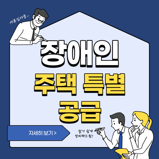 장애인 주택 특별 공급 제도는 전용면적 85㎡ 이하의 공공분양 및 공공임대주택, 국민임대주택, (장기) 전세임대주택, 다가구 매입임대주택을 우선 공급하는 제도이며, 지원 대상은 무주택가구 구성원인 등록장애인이며 지적·정신 장애인 및 장애의 정도가 심한 뇌병변장애인의 경우 그 배우자도 포함됩니다. 오늘 포스팅에서는 다양한 장애인 지원 제도에 대해 알려드리니 꼭 끝까지 열람하시길 바랍니다.