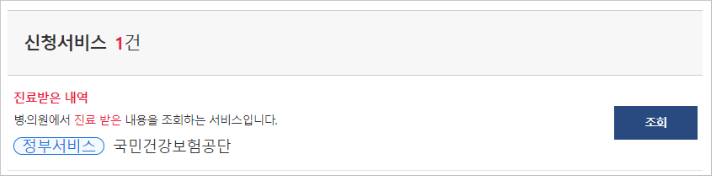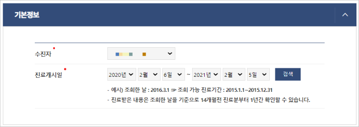 2) 검색바에 진료받은 내역 검색 후, 조회하기 버튼을 클릭합니다.