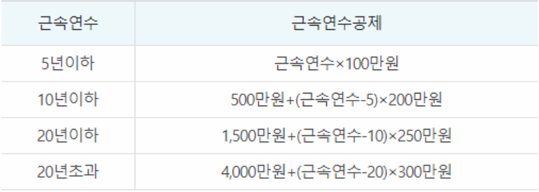 - 근속연수 공제 : 2023년 1월 1일 개정 후