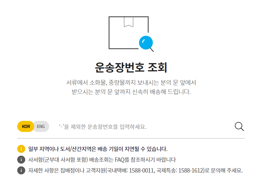 3) 운송장 번호를 입력하시면 조회가 가능합니다.