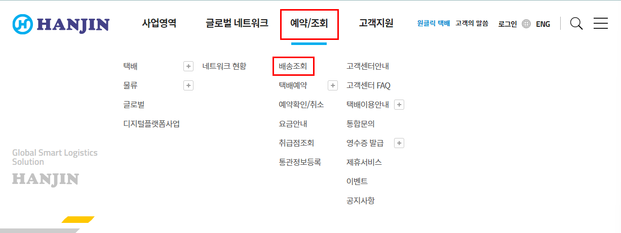 2) 예약/조회 클릭 후 배송조회 클릭