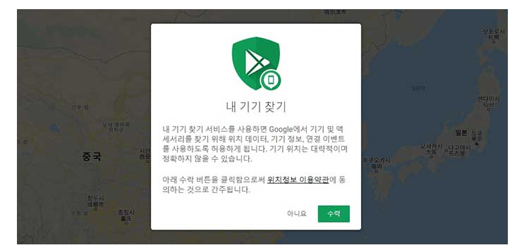 1) 스마트폰에 등록 되어있는 구글 아이디로 안드로이드 기기관리자에 로그인합니다.