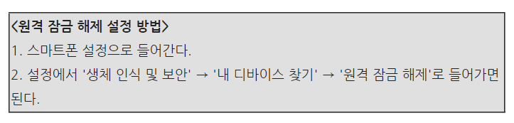 원격 잠금 해제 설정 완료 후 하단의 사이트에 접속해 하단에 기재된 순서에 맞게 진행하시면 스마트폰 잠금해제가 완료됩니다.