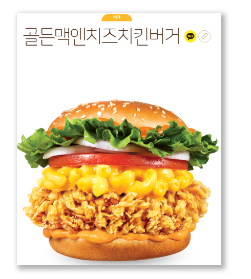싸이버거 속 통닭다리살 패티와 꾸덕하고 고소한 맥앤치즈가 들어가 육즙이 넘치며 고소하고 짭짤한 버거입니다. 이름만 들었을땐 꾸덕한 맥앤치즈 때문에 느끼할것 같지만, 매콤한 치폴레 소스가 함유되어 있어 느끼함을 싹 잡아주는 짭짤고소한 버거입니다. 628kcal / 당류 11g / 포화지방 10.5g / 단백질 29g 으로 비교적 무난한 영양성분을 지니고 있습니다.